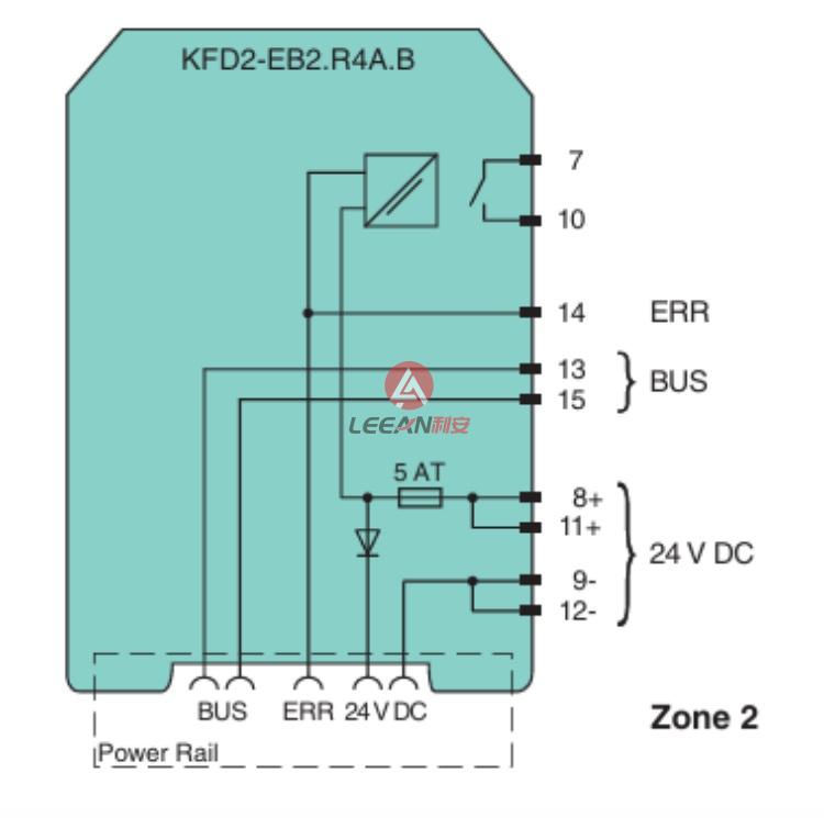 Additionally, the bus implemented in the Power Rail is forwarded to the outside terminals 13 and 15 for usage with KFD2-WAC2-Ex1.D RS 485 connection. Terminal 14 is only for test purposes.
