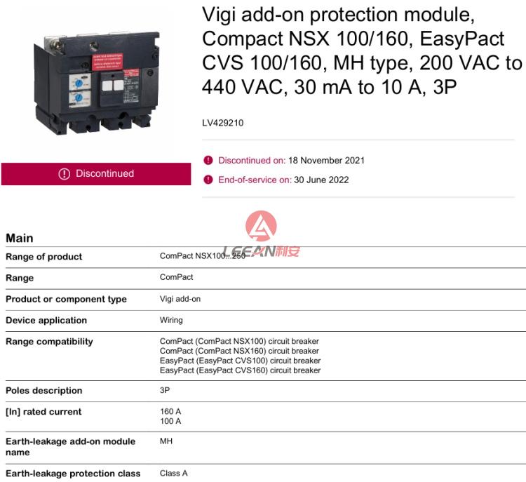 Schneider Electric 3 Poles Earth-leakage Add-on Protection Module LV429210 ComPact NSX 100/160 New