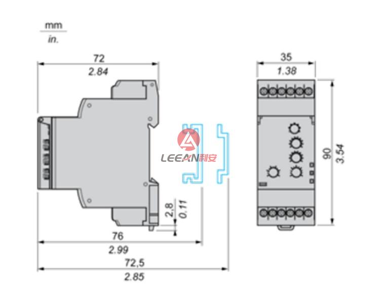 This Harmony RM35-T multi function control relay allows monitoring of power supply circuits in 3-phase networks. This modular multi function 3-phase control relay is ideal for monitoring of electrical values in industrial and building control panels. It applies to a wide type of industrial automation applications such as hoisting, packaging, lifts, textile, water. It has one of market medium form-factors with 35mm width, allowing for a flexible and easy installation on DIN rail, using the same space as any modular 3-pole DIN device. It also offers a selectable memory function, integral LED for indicating control status, sealable cover, with simple and precise settings with screw trimmers. It provides automatic shutdown management and fault information to user for a quick fault identification and troubleshooting. Multi function controller for wide choice selected in hard-wired logic automated systems, ideal for refurbishment of old installations without using a PLC.