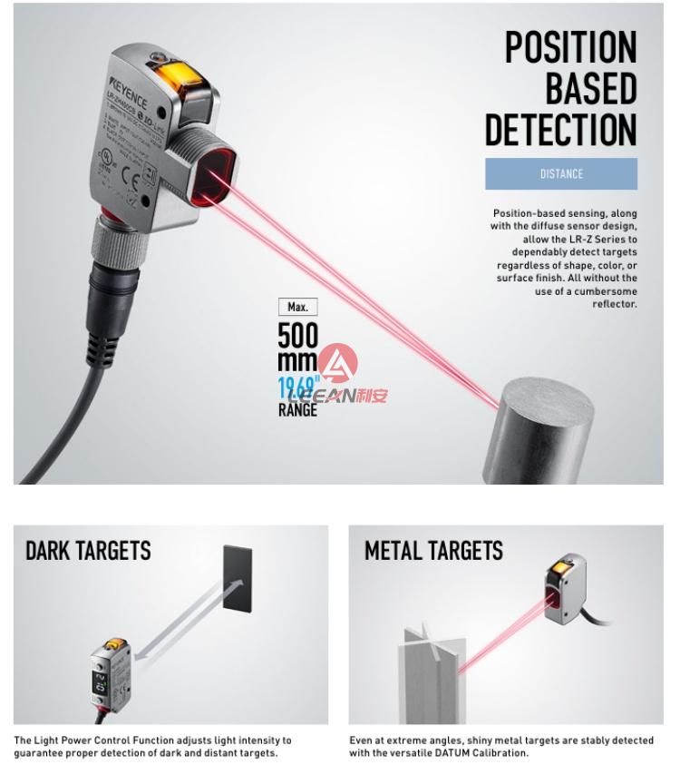The LR-Z Series provides highly stable detection and a wide array of uses. By using CMOS technology and a Light Power Control Function, the LR-Z's detection ability is not affected by target color, surface finish, or shape the way a conventional sensor can be.