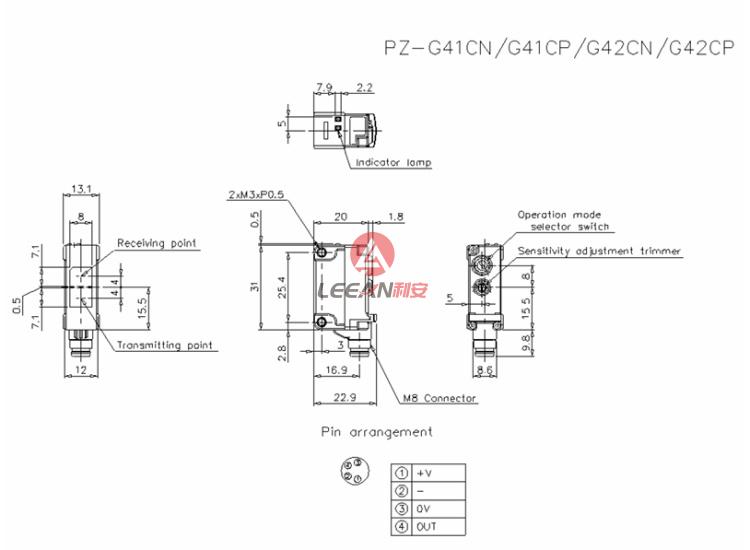 KEYENCE PZ-G Series PNP Built-in Amplifier Photoelectric Sensor PZ-G41CP Square Reflective M8 Connector Type New