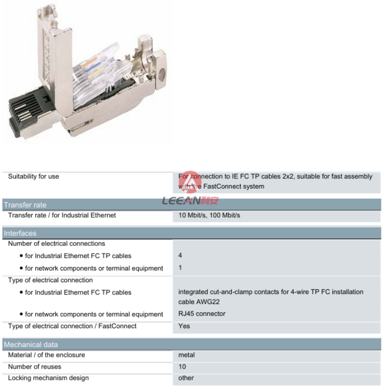 Industrial Ethernet FastConnect RJ45 plug 180 2x 2, RJ45 plug-in connector (10/100 Mbit/s) with rugged metal enclosure and FC connection system, for IE FC