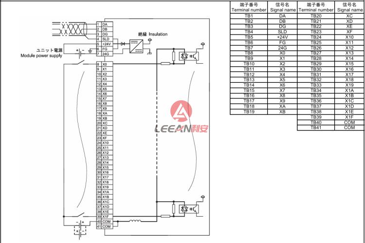 Number of input points:32 points Isolation method:Photocoupler Rated input voltage:24VDC (ripple ratio: within 5%) Rated input current:Approx. 7mA Operating voltage range:19.2 to 26.4VDC Max. number of simultaneous input points:100% ON voltage/ON current:14VDC or higher/3.5mA or higher OFF voltage/OFF current:6VDC or lower/1.7mA or lower Wiring method for common:32 points/common (2 points) (1-wire, terminal block type) Protection degree:IP2X Weight:0.25kg